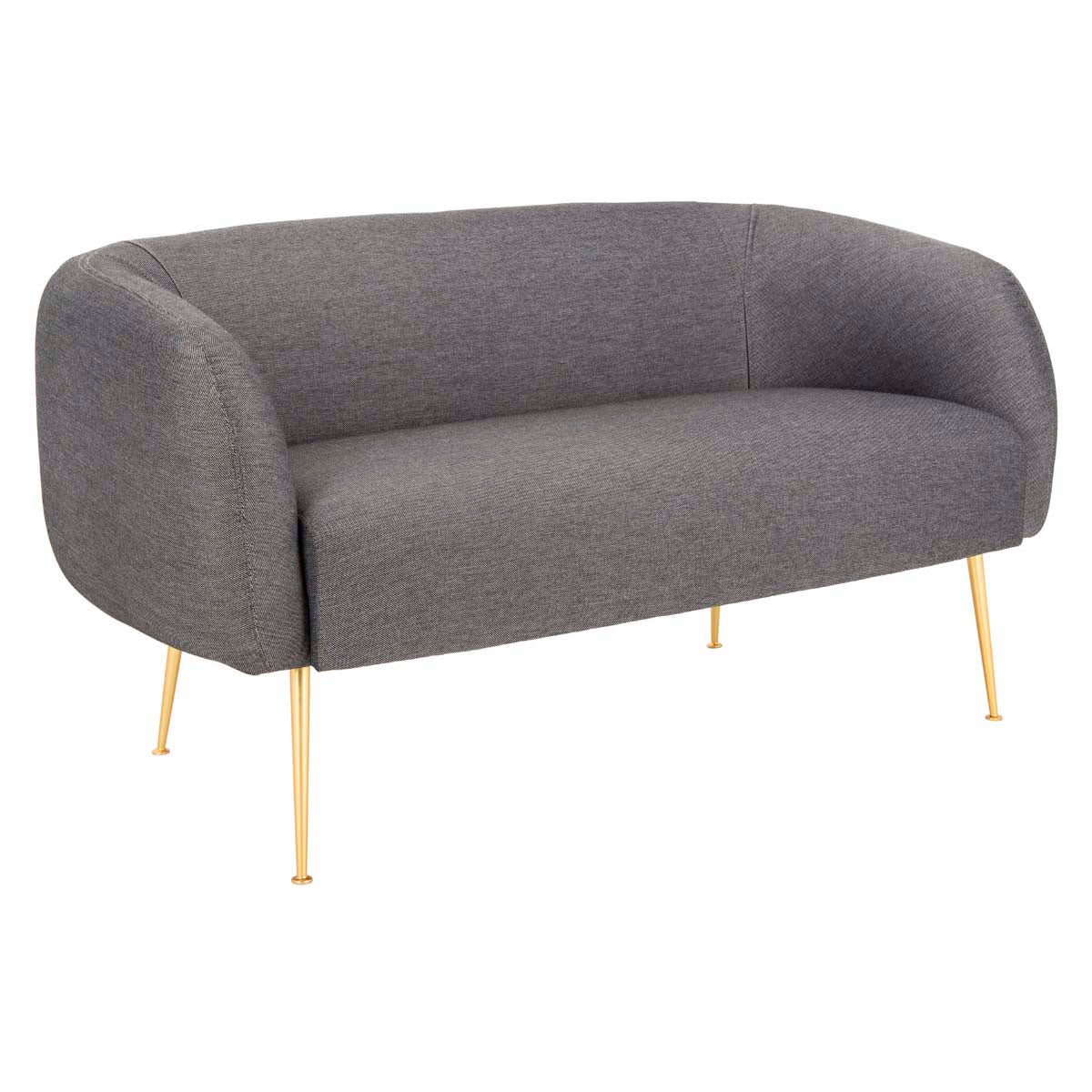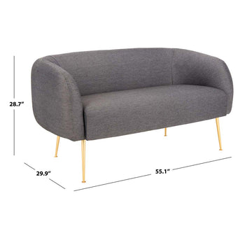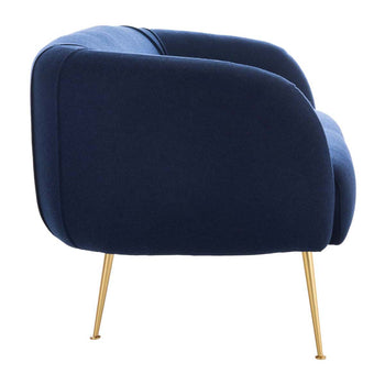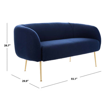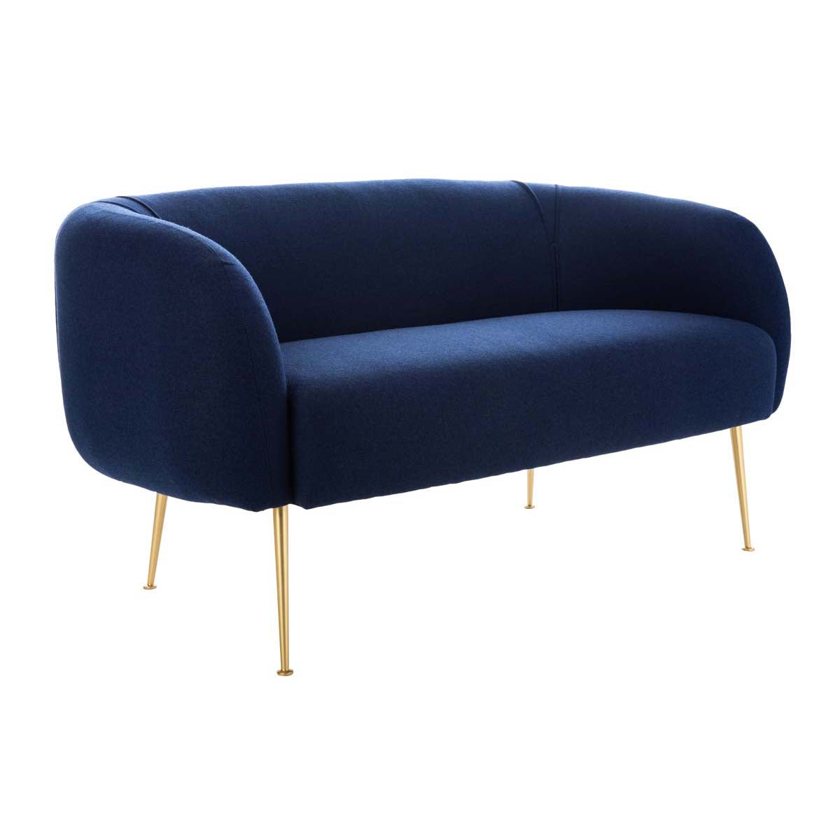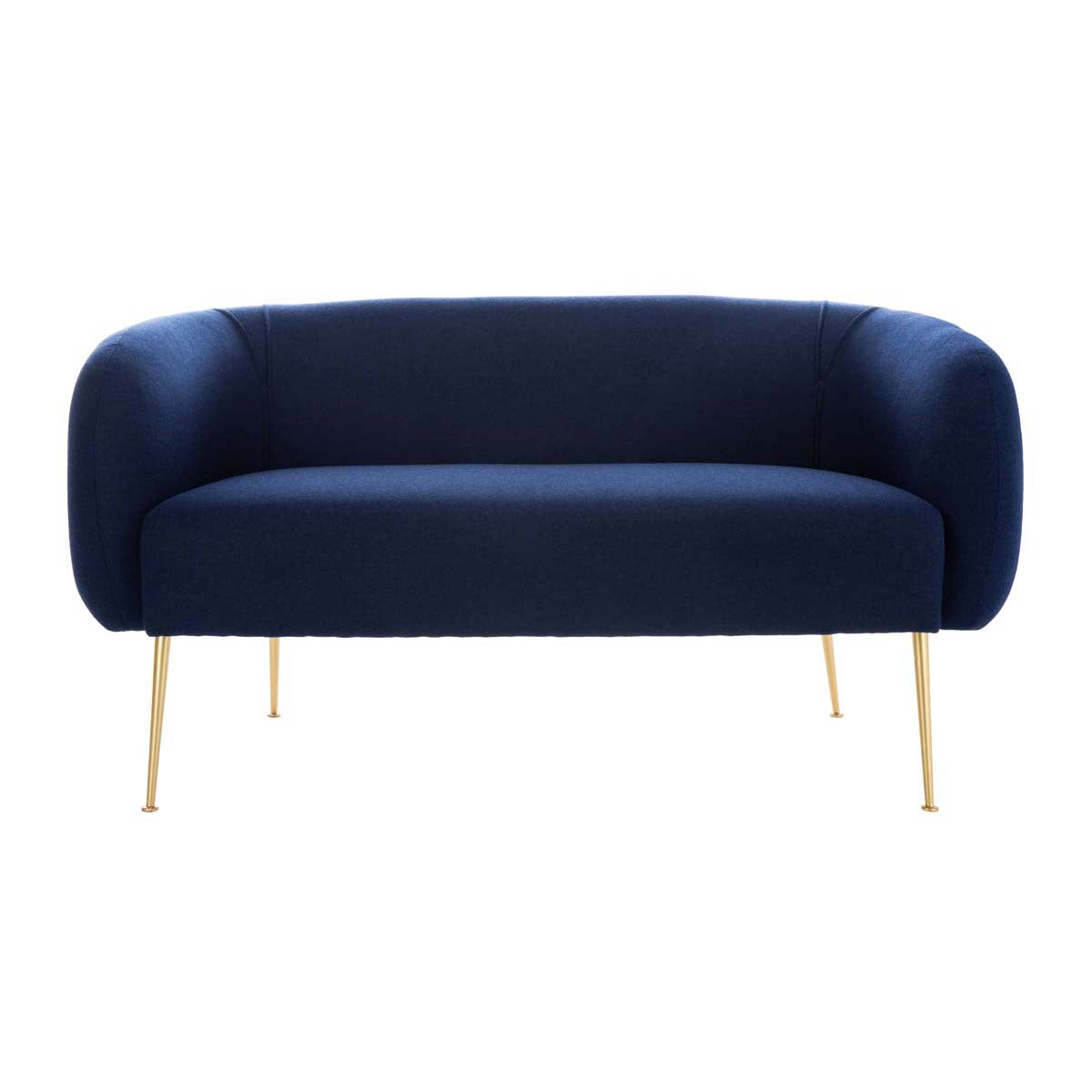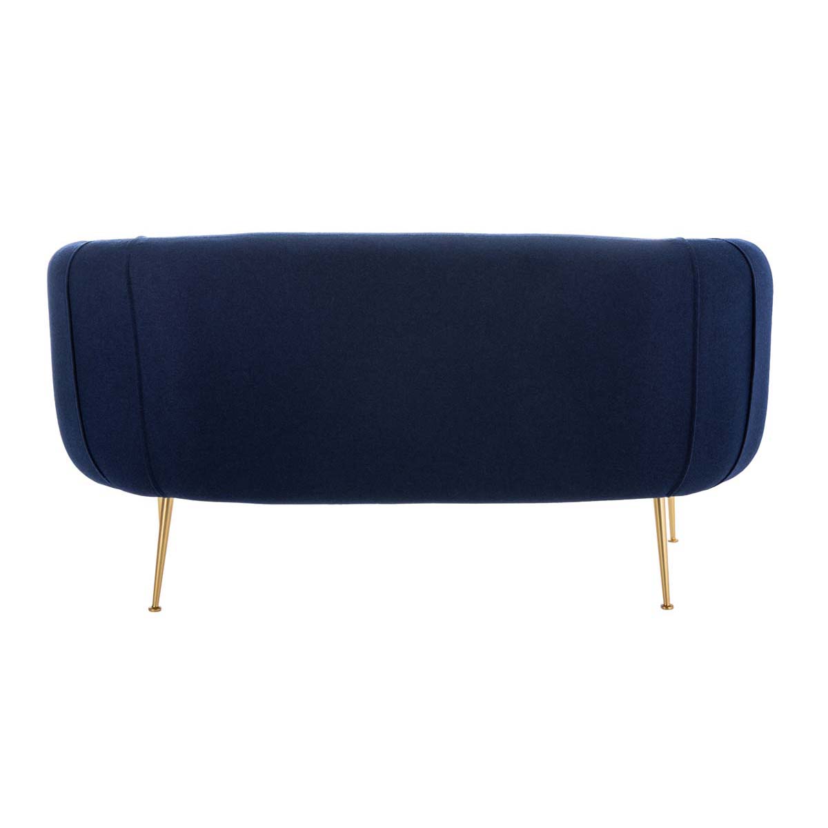 Inspired by the bespoke furnishings of Los Angeles' most sought after interior designer, the Alena loveseat is a contemporary iteration of mid century style. Its generously upholstered navy frame is paired with posh gold legs for timeless sophistication.