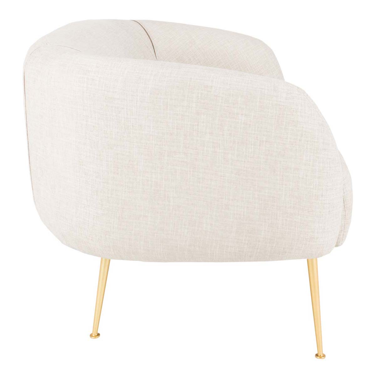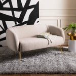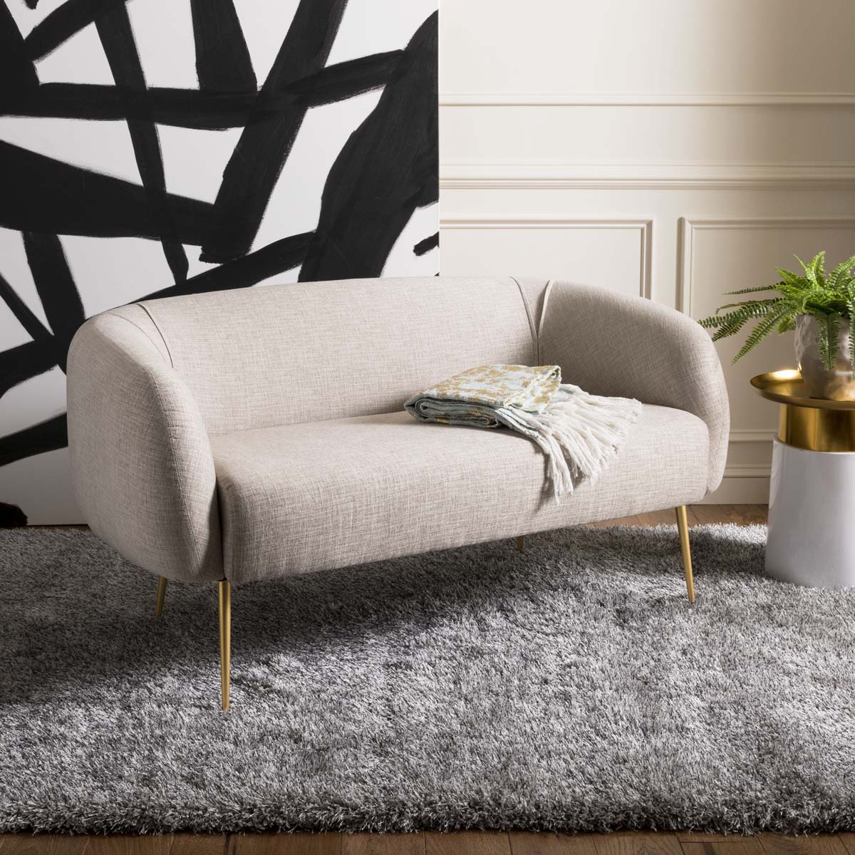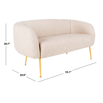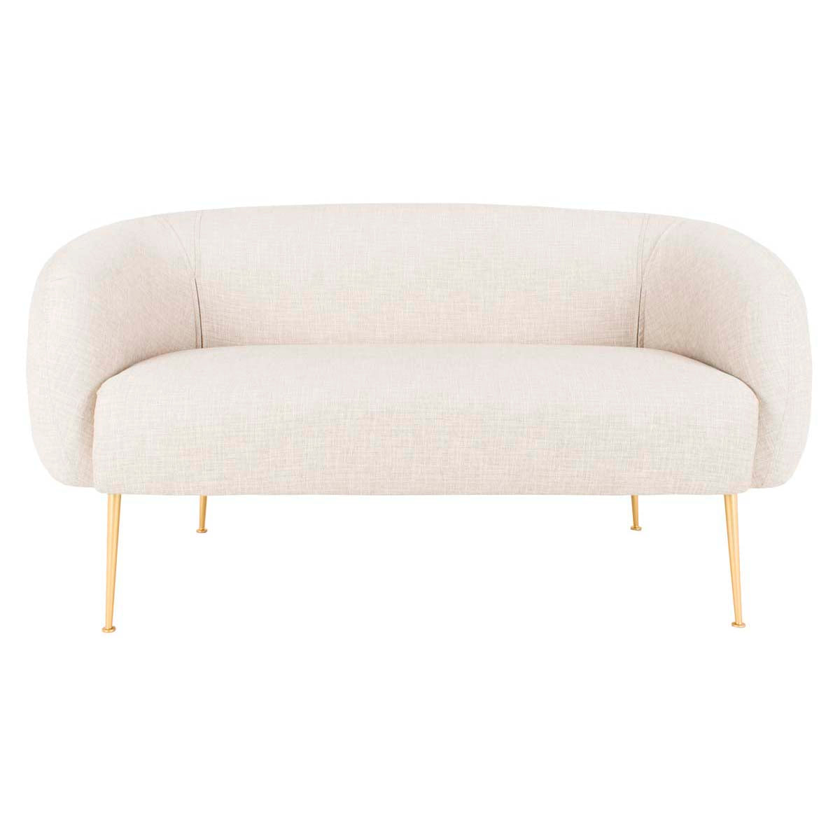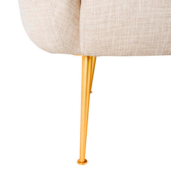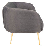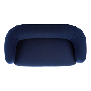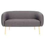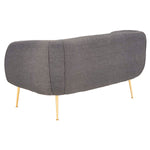 Inspired by the bespoke furnishings of Los Angeles' most sought after interior designer, the Alena loveseat is a contemporary iteration of mid century style. Its generously upholstered navy frame is paired with posh gold legs for timeless sophistication.