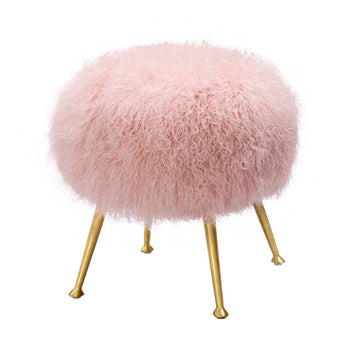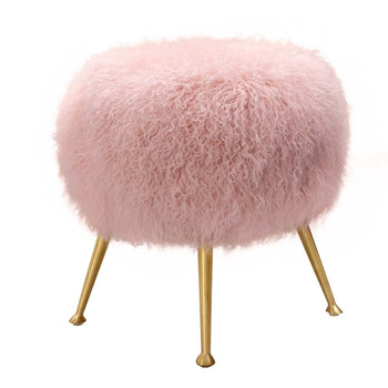 Plush and penthouse chic, this Anna Ottoman brings high fashion charisma to any glam interior. Anna's genuine sheepskin cushion in a cosmopolitan blush tone is captivating and soft to the touch, beautifully held aloft by haute couture gold legs.
