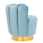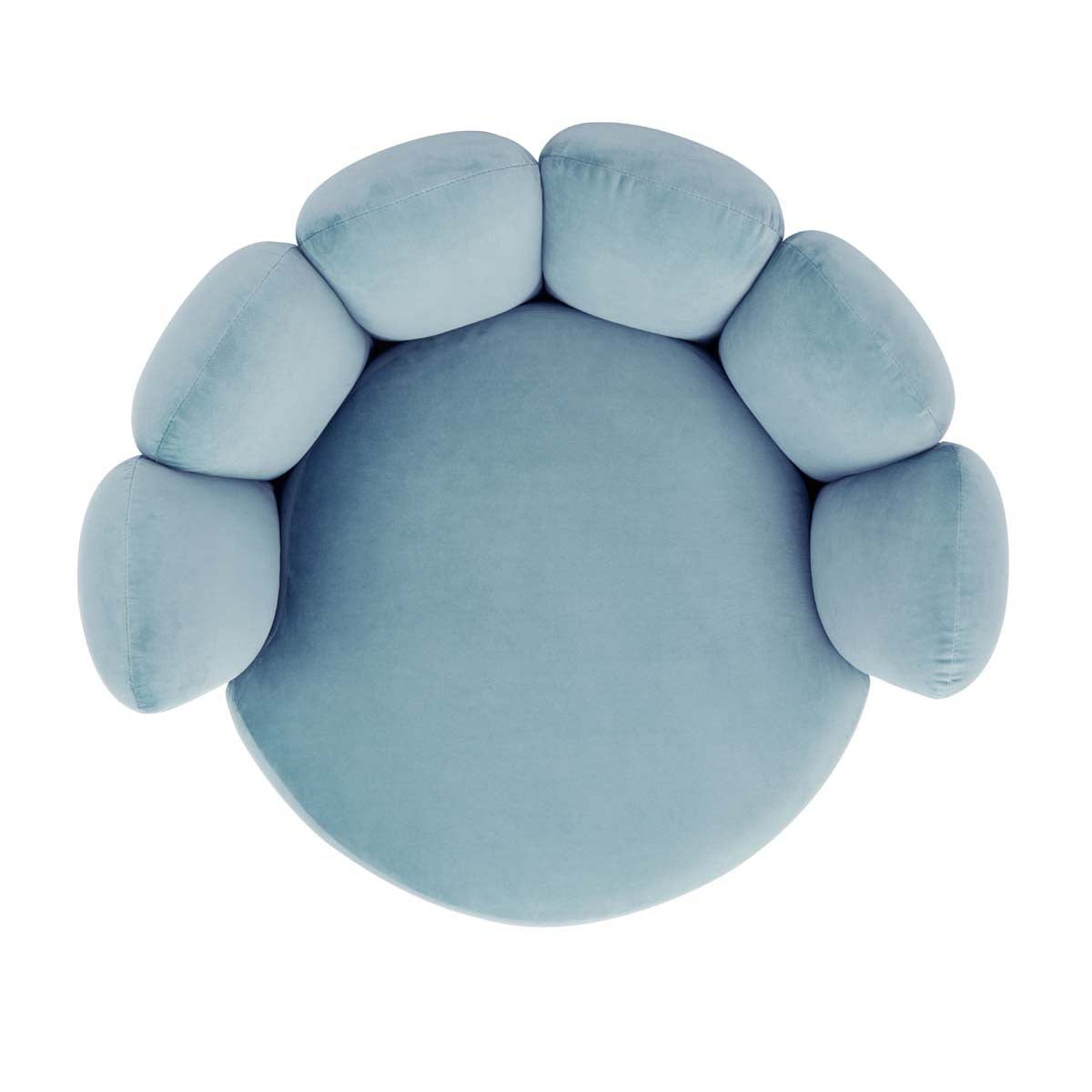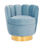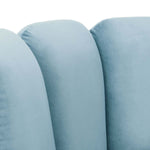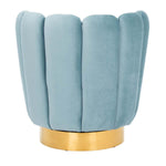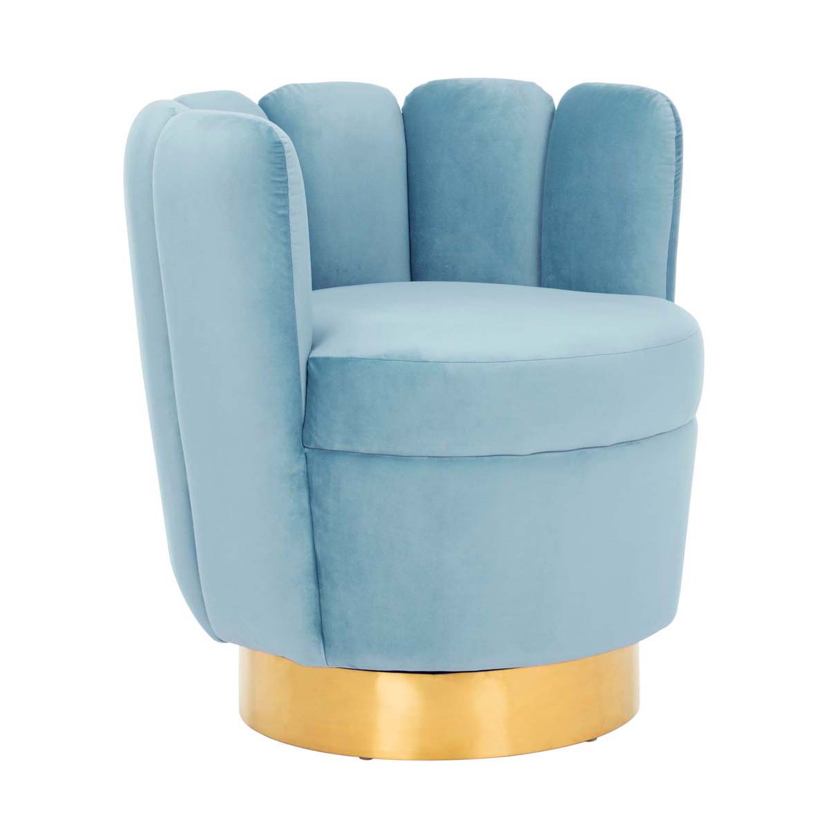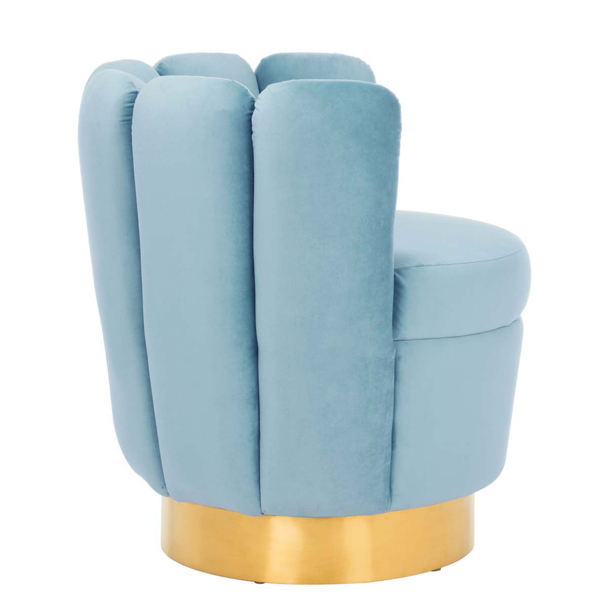 Glamourous and sophisticated, this indulgent channel tufted chair was inspired by the decadence of vintage Italian design. Finely crafted, its light blue velvet upholstery features exquisite channel tufting and sits upon a luxurious gold foundation.