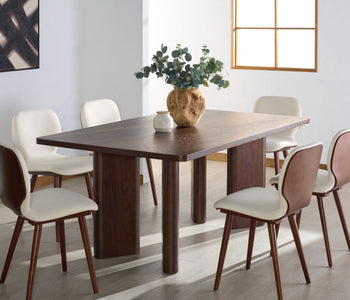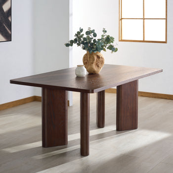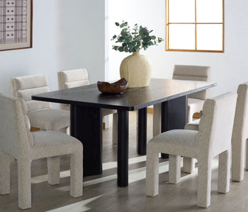 Introducing the Barnard Rectangle Wood Dining Table. This stunning piece is designed to elevate your dining experience with its clean lines and elegant silhouette. Crafted from durable wood, it seamlessly blends functionality with style, making it a perfect addition to any contemporary home.