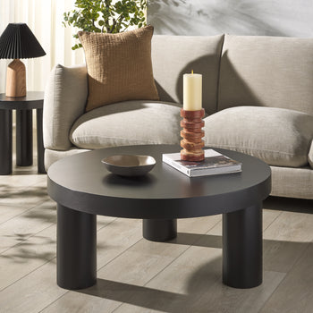 Introducing our Bary Round 3 Leg Wood Coffee Table, a stunning addition to any living space. Crafted from choice Mahogany and Mahogany Veneer, this table features a robust black or natural finish that enhances its sophistication. The Bary table exhibits an expert blend of style and functionality. Its 3-legged design ensures stability, while its round shape makes it a standout feature in your space. This coffee table promises to make your coffee or cocktail drinking experience more leisurely and pleasurable. Elegant and versatile, the Bary Round 3 Leg Wood Coffee table in standout black is a sleek addition to a home looking for a dash of practical elegance.