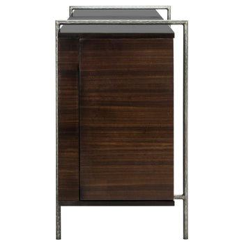 A contemporary heirloom, the Baxton Wood Sideboard is a preferred designer investment. Fitted with finely appointed storage, its luxe smoked eucalyptus veneer seamlessly adorns is sleek bodice. Its black nickel steel detail lends the cache of modern sculpture.