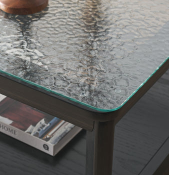 The Benecarlo Coffee Table's distinguishing feature is its glass top, a combination of style and functionality. Besides offering an elevated aesthetic, it also paves the way for a see-through, open feeling, making your living area appear more spacious.