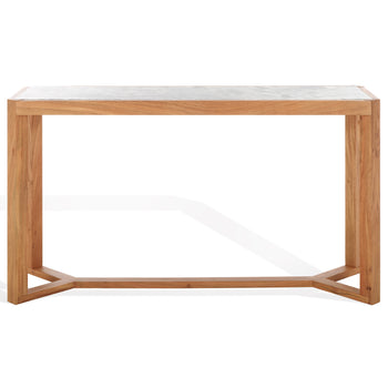 Introduce a touch of elegance to your interior space with the Bernardi Marble Top Console Table. This eye-catching piece boasts a color scheme that can seamlessly fit into any decor. Crafted with conscientious attention to detail, it features Acacia wood for its structural elements. This sturdy and robust wood increases the durability and stability of the table, making it equally beautiful and practical. The star of the show is certainly the marble top of the console. This opulent material elevates the aesthetic appeal of the table, while also providing a hardy and easy-to-clean surface. Ideal for displaying your favorite items, the Bernardi Marble Top Console Table makes a statement in any room, all without sacrificing functionality. Add this remarkable accent piece to your decor and witness its ability to transform your space instantly.