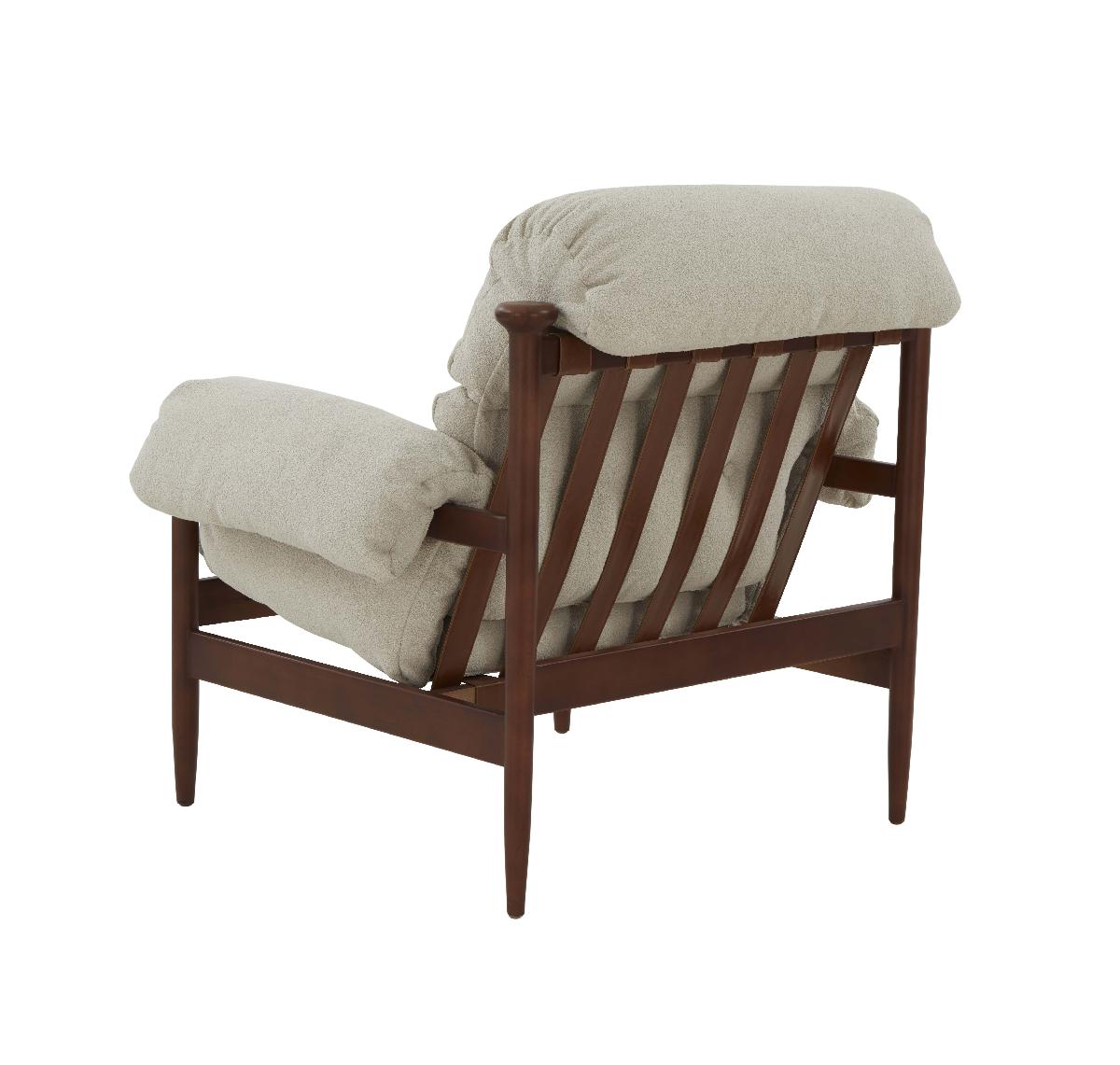 Bring sophisticated style and comfort to your home with our Blakeson accent chair. Featuring a sleek Beachwood frame and beautifully tailored boucle upholstery, our retro-inspired chair remains a chic, comfy, and versatile addition. Its shapely rounded arms and generously padded upholstery rest upon a woven seat to offer sink-in comfort. A channeling detail and button tufting upon the seat adds dimension, giving the perfect finishing touch. Our stunning accent chair features a dark brown finish that beautifully complements its taupe-colored upholstery to sit easily and effortlessly in a living room, nursery, bedroom, or study.