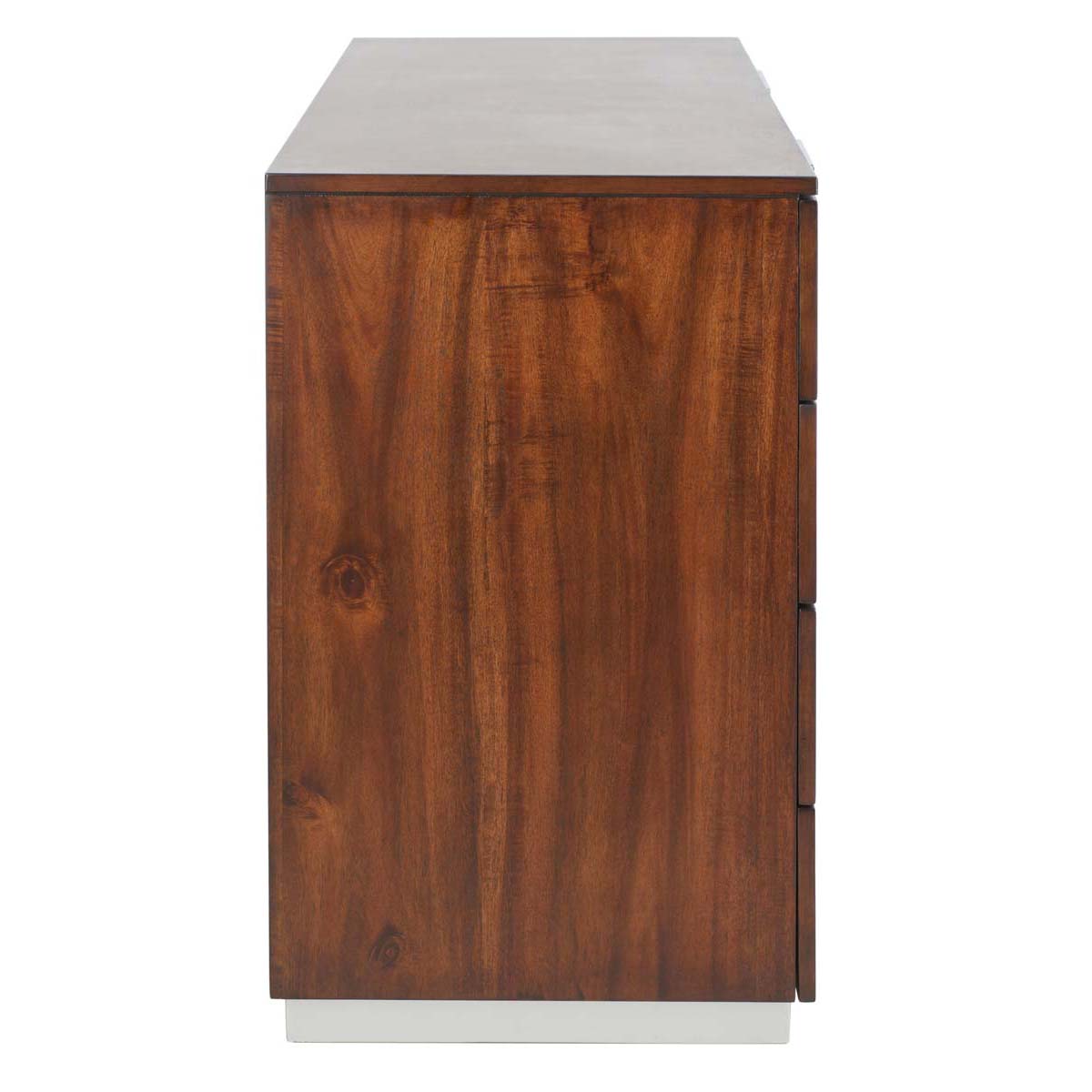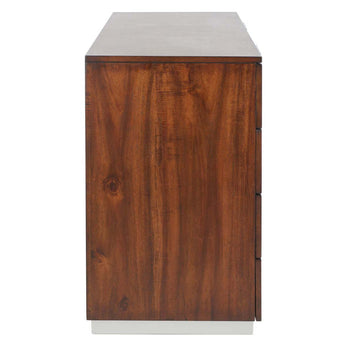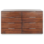 Designed to showcase the best of rustic warmth and contemporary chic, this Brylin 8 Drawer Dresser is a striking study in artistic contrasts. Brylin's dark walnut finish and acacia veneer beautifully juxtapose with its chrome plated metal pulls and plinth, making for a versatile look that's always in vogue.