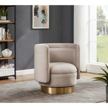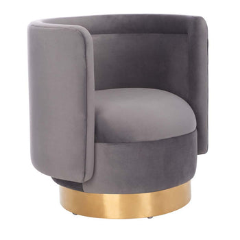 Envelop yourself in comfort with the heavenly design of the Brynlee Swivel Accent Chair. Glamorously styled with a gold swivel base shimmering beneath lavish slate grey velvet upholstery, Brynlee's embracing silhouette boasts penthouse panache fit for any interior.