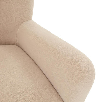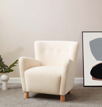Create the perfect spot to relax and snuggle up with the Carey accent chair. Enriched with modern flair, the chair shows off a plush and sumptuous profile. Its voluminous arms, back, and a chunky seat is elevated upon birch wood legs. Adorned in a classy ivory shade, our chair showcases rich textures of faux shearling to warm up your space. Our modern and cozy accent chair is perfect for reading, relaxing, and lounging.