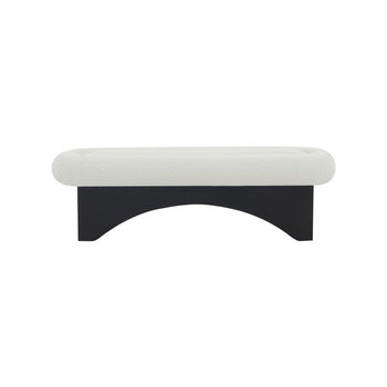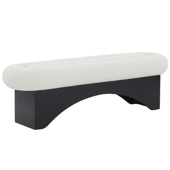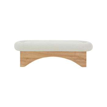 Make a plush and elegant statement with our Casren bench. Enriched with inviting curves and a blend of fine materials, our bench offers comfort with a stylish edge. Its densely cushioned seat features rounded corners for an inviting appeal. The plush curves are complemented with an arched, ashwood base. Our stunning bench is upholstered in boucle for a cozy and luxurious touch. It can serve as an elegant and comfy addition to a seating area, entryway, or the foot of your bed.