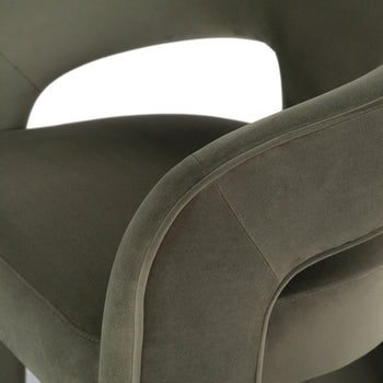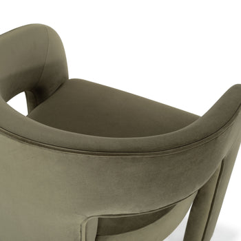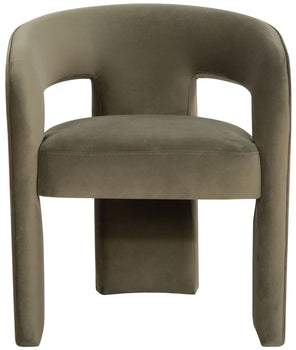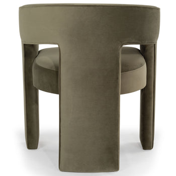 "Indulge in the luxury of dining with our all new Catharia Velvet 3 Leg Dining Chair. Expertly crafted with pure plywood, it exudes an elegance that is bound to elevate your dining experience. The velvety finish with its rich olive green color will add a burst of freshness and sophistication to your dining aesthetics. The sleek three-legged design, coupled with the smooth and plush velvet surface, promises both style and comfort. With the Catharia Velvet 3 Leg Dining Chair in your space, cultivate an ambience of elegance and poise. Prepare for compliments as this fine fusion of comfort, charm and durability enhance your dining experience. With our Catharia Chair, you don't just dine, you dine in style."