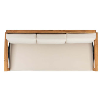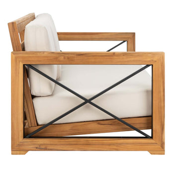 Artful and intriguing, the Curacao Outdoor Sofa blends the allure of negative space with relaxing living room comfort. Curacao's Brazilian teak frame is seamlessly juxtaposed with X-detail black stainless steel sides and plush, cream-colored cushions, elevating a classic profile to the pinnacle of high-style outdoor decor. Curacao seats up to three with ease and sophistication.