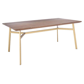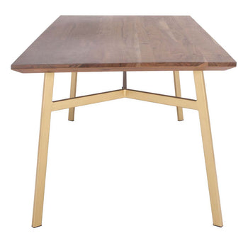Give any contemporary dining space a touch of glamour with this Dakota Rectangle Dining Table. Sleek brass gold legs shine brilliantly beneath a warm walnut-finished top, making a decadent statement in any decor.