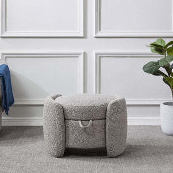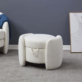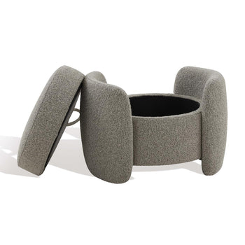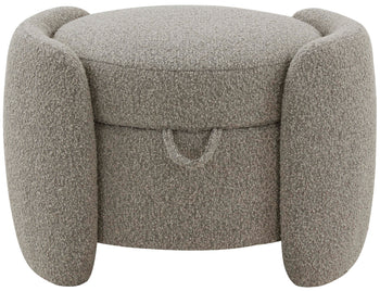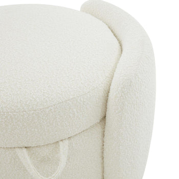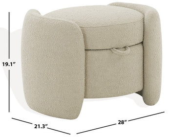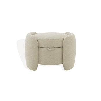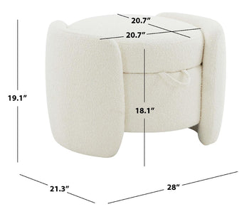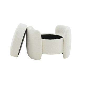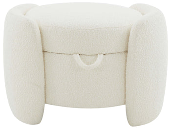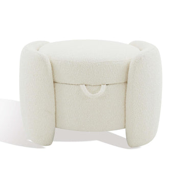 Elevate the style and comfort of your home with the sculptural beauty of our Danianna ottoman. It stands out with its curved, sculptural legs that beautifully cuddle a generously padded seat. The cozy and plush silhouette of our ottoman is accentuated with rich textures of boucle. Adorned in a graceful ivory shade, the ottoman serves as a footrest allowing you to kick back and relax, or offers a comfy seat for guests. Our stylish and multiple-purpose ottoman also reveals storage underneath to bring ultimate convenience to your living space.
