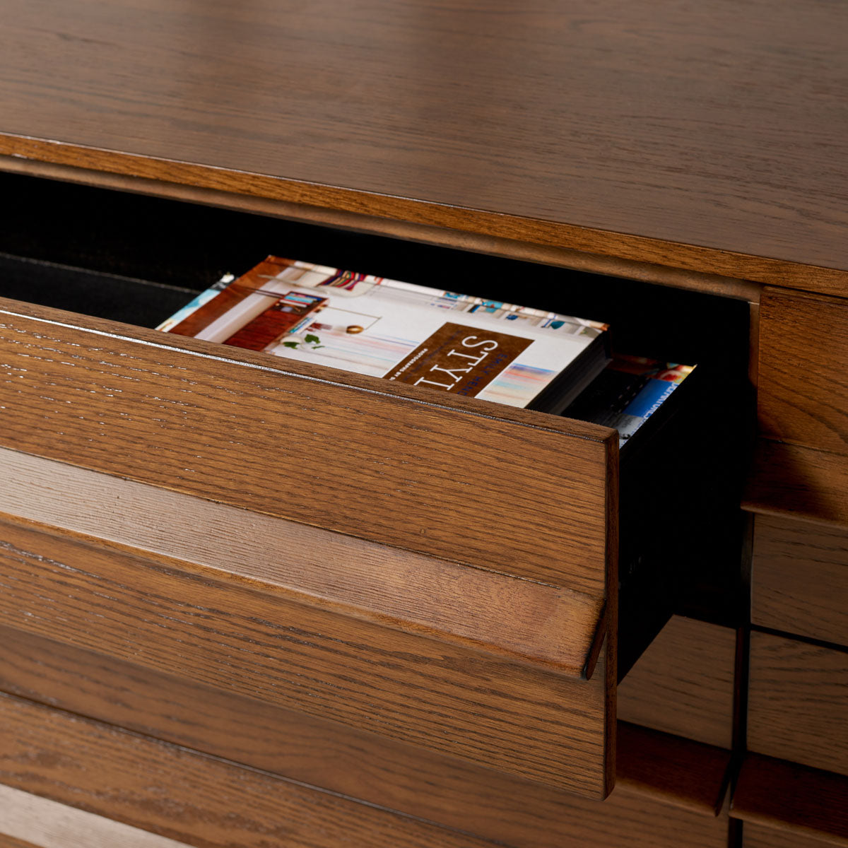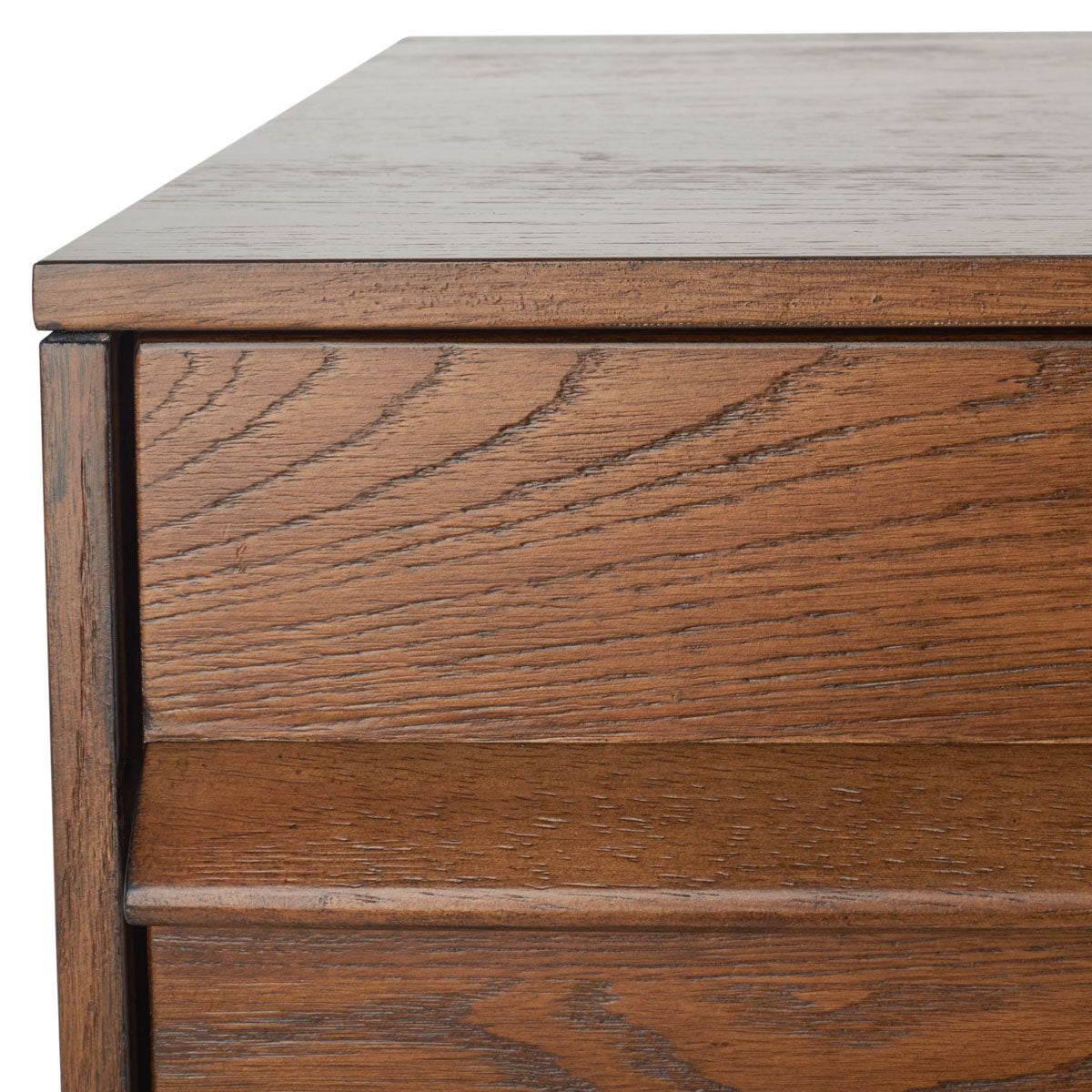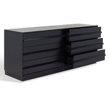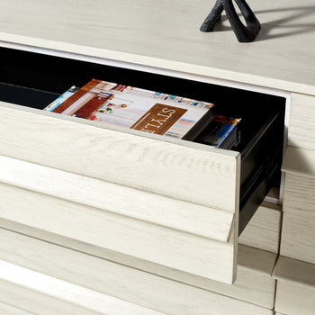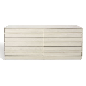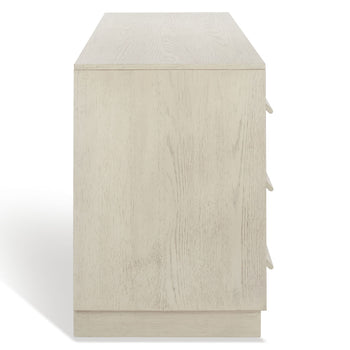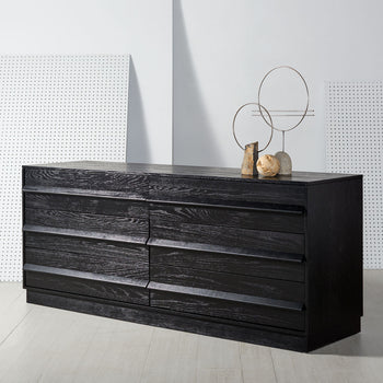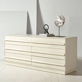 Embrace the convenience and sleek style of our Deirdra dresser. Defined by a minimalistic profile and functional details, our dresser vouches for a streamlined and elevated look. It beautifully highlights the rich grains of whitewashed Oak veneer to keep the look sleek and sophisticated. Finished off with slim and seamless handles, the dresser brings effortless style to work with a variety of settings. Featuring six roomy drawers, our dresser is perfectly equipped to keep all your clothing, linens, and knick-knacks organized.