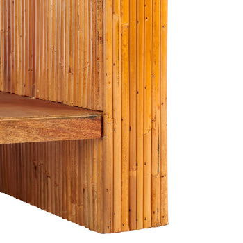 Add a fresh and modern dimension to your space with our Dellabryn accent table. Full of organic warmth, our accent table beautifully layers warmth and character into your home. A sleek waterfall edge and open design lend modern appeal to the table. Effortlessly showcasing the natural warmth and texture of rattan, our accent table offers a warm and naturally elevating tone. It includes a mahogany shelf to provide ample space for both storage and display. Our accent table remains a chic and inviting addition to your sofa, armchair, or bed.