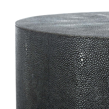 The dramatic texture of black faux shagreen enlivens the simple silhouette of the Diesel end table. Crafted of resin to simulate natural sting ray skin, this piece recalls the shagreen furniture crafted by master artisans during the Art Deco period.