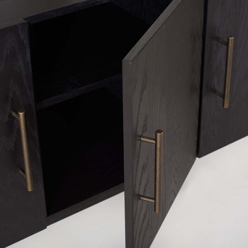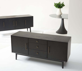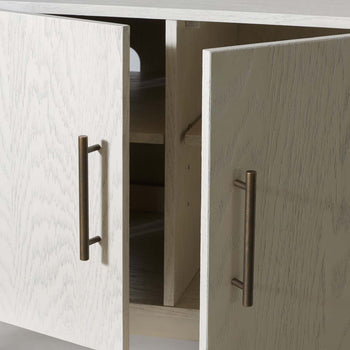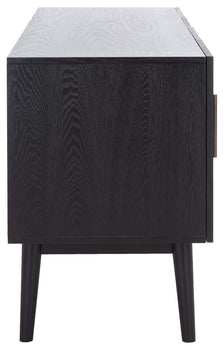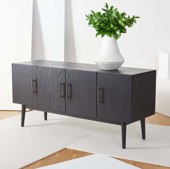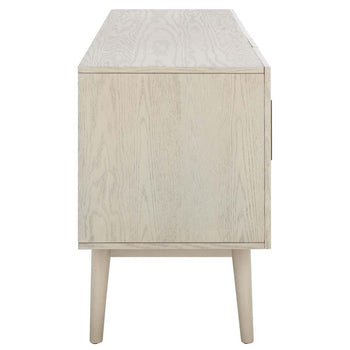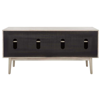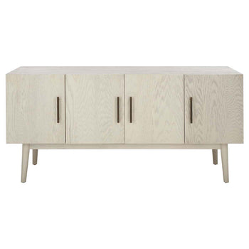 Retro is all the rage, and nothing exemplifies this more than the Doderick Media Stand. At once Mid-Century and modern, Doderick's flowing wood grain is highlighted by a rich oak veneer and whitewash finish, while classic splayed legs complete the look. Four doors provide ample storage in any entertainment space.