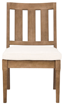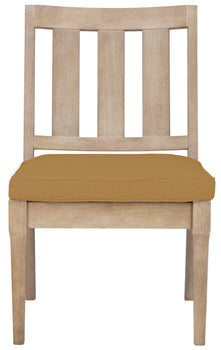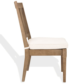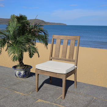 The Dominica Outdoor Dining Chair inspires the art of conversation around the dinner table in classy, coastal style. A slatted back conveys the cool breezy feel of Dominica with a plush cream cushion adding a comfort-soft perch for its natural-finished eucalyptus wood frame. Sold in sets of two.
