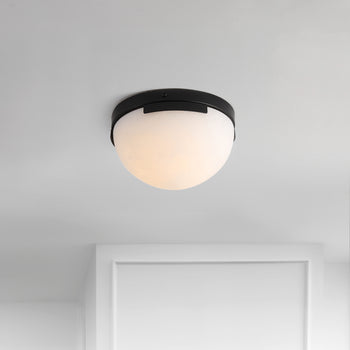 Introducing the Eddie Alabaster Flush Mount. Crafted with precise artistry, this flush mount is the embodiment of contemporary elegance and minimalist design. Imbued with a modern shade and a delightful off-white hue, this fixture guarantees to add a warm, inviting presence in any space. Constructed with iron, this piece boasts dependable durability without sacrificing on style. The homogeneous blend of the color and off-white delivers a multiplication of light that will imbue your living space with a subtly vivacious glow. The centerpiece, an Alabaster Flush Mount, adds a touch of sophistication that complements any decor style with its understated charm. Whether it's for the living room, study room, or bedroom, this stylish fixture brings a snazzy punch of illumination that isn't overwhelming but just right. Choose Eddie Alabaster Flush Mount today and grasp the epitome of tasteful lighting design that brings out that warm and snug ambiance in your home.