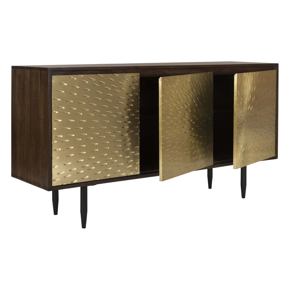 The guest of honor at any soiree, this brass sideboard is a modern heirloom. Inspired by the work metal artisans, it was crafted with a rich brown hue to showcase its luxe brass metal finish. Ideal in any dining room, designers love its radiant texture.