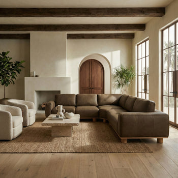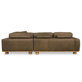 Transform your living space with the Ellyn leather L shaped sectional in dark olive. This striking piece combines the elegance of top grain leather with the natural beauty of wood, providing a stylish and inviting ambience. The corner seat design maximizes seating space, making it a perfect fit for gatherings or quiet nights in. With its rich dark olive hue, this sectional complements a variety of decor styles, adding a touch of sophistication to any room. The expertly crafted foam cushions offer comfort and support, ensuring relaxation at every use. Each detail is thoughtfully designed to enhance your home with functionality and style. Whether hosting friends or unwinding after a long day, this sectional is an ideal centerpiece for your living area. Experience the perfect blend of comfort and design with the Ellyn leather L shaped sectional, where contemporary lines meet timeless appeal.