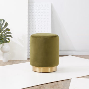 Coveted vintage Italian designs inspired this luxurious velvet ottoman. Its sumptuous velvet upholstery and sculptural brass base are ideal for extra seating in the living room or as an impromptu surface for a tray of drinks.