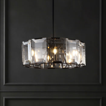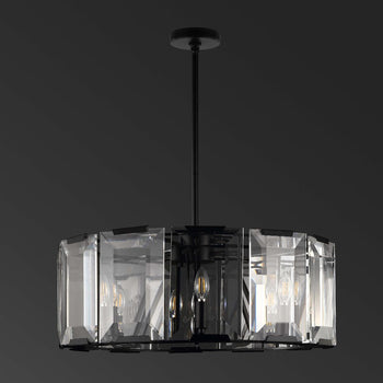Transform your decor with the celebrity-chic appeal of this exquisite Esperanza Chandelier. Revitalizing the classic drum shape with spellbinding splendor, Esperanza's emerald-cut crystal is lavishly decadent, pairing perfectly with its sleek and modern black metal frame.