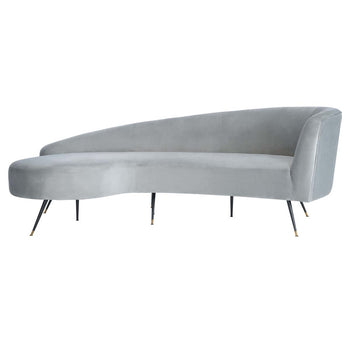 An invitation to the elegance of couture style, this sensuous velvet Parisian sofa is a sculptural focal point in any living room. Perched atop slender metal legs, its luxurious velvet upholstery embraces each curve and angle. A design investment.
