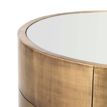 Milan's blend of modern and ancient architecture inspired this contemporary round side table. A pairing of substance and style, its bold marble construction features a warm antique brass finish that makes a sophisticated statement in any living room.