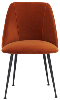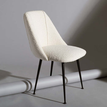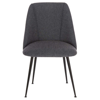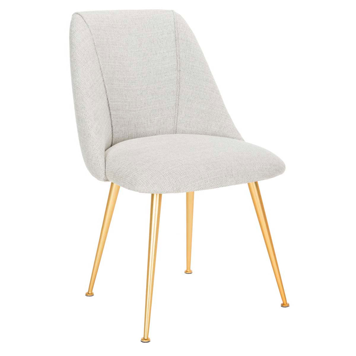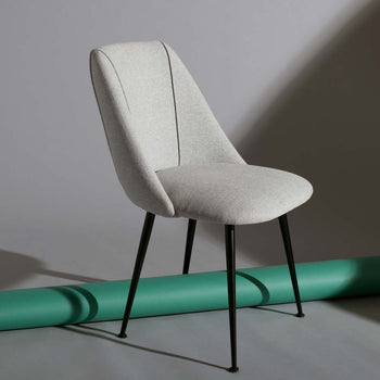 This chic contemporary dining chair adds texture, form and style to any living room or dining area. Its minimalist design pairs soothing polyester upholstery with radiant finished capped legs. A new classic, designers love its effortless luxury.