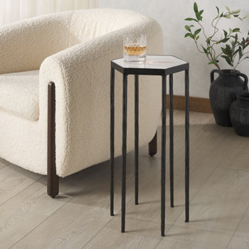 Immerse yourself in an ambiance of elegance and style with our exquisite Galvin Marble Top Drink Table. This luxurious piece features a stunning blend of black and white hues that provide a captivating contrast, perfectly suitable for any contemporary or traditional decor. Crafted from robust iron that ensures durable stability, the table boasts a premium marble top that adds a touch of chic sophistication. Whether you're entertaining guests or enjoying a quiet evening drink, the Galvin Marble Top Drink Table is an essential addition to your living space, seamlessly merging practical design with upscale allure. Experience timeless charm and extraordinary resilience in one go, and transform your home with the unrivaled elegance of our magnificent Galvin Marble Top Drink Table.