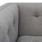 With a nod to the simple elegance of cubism, the Garnet Arm Chair celebrates clean contemporary lines in class and comfort. Garnet's enticing frame is upholstered in tufted linen, inviting you to be absorbed in its decor smart grey tones. Made with a sturdy ash wood frame, Garnet brims with charisma.