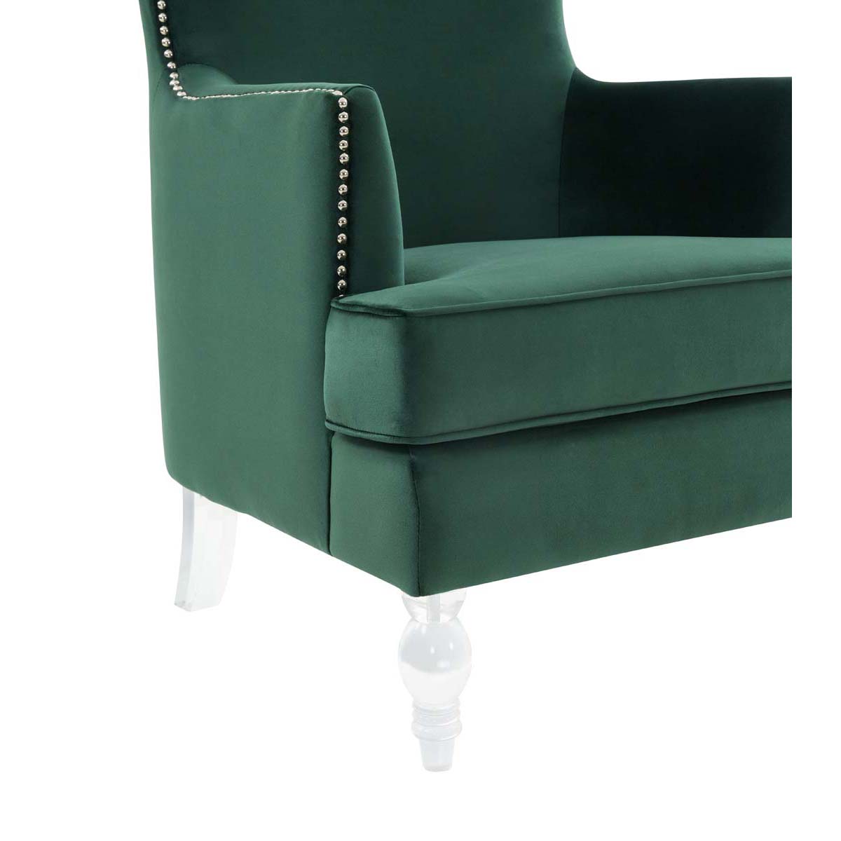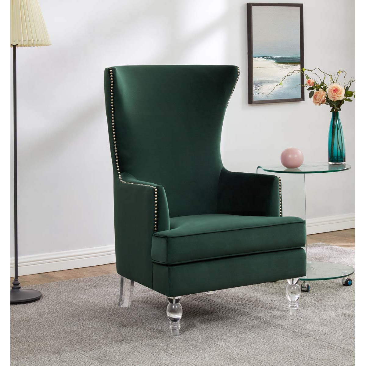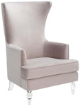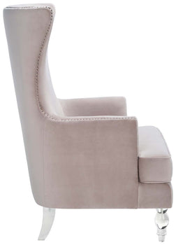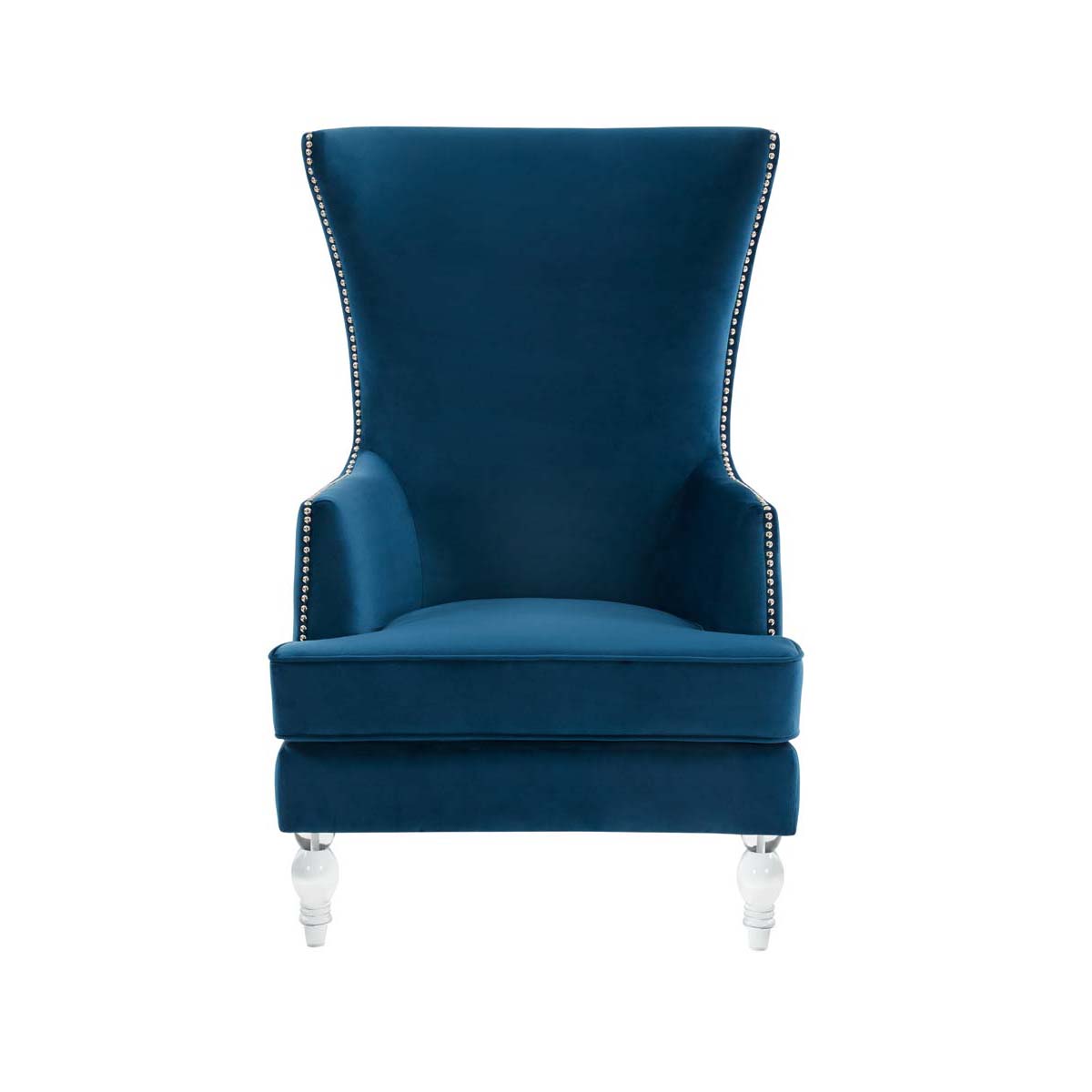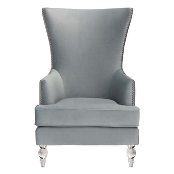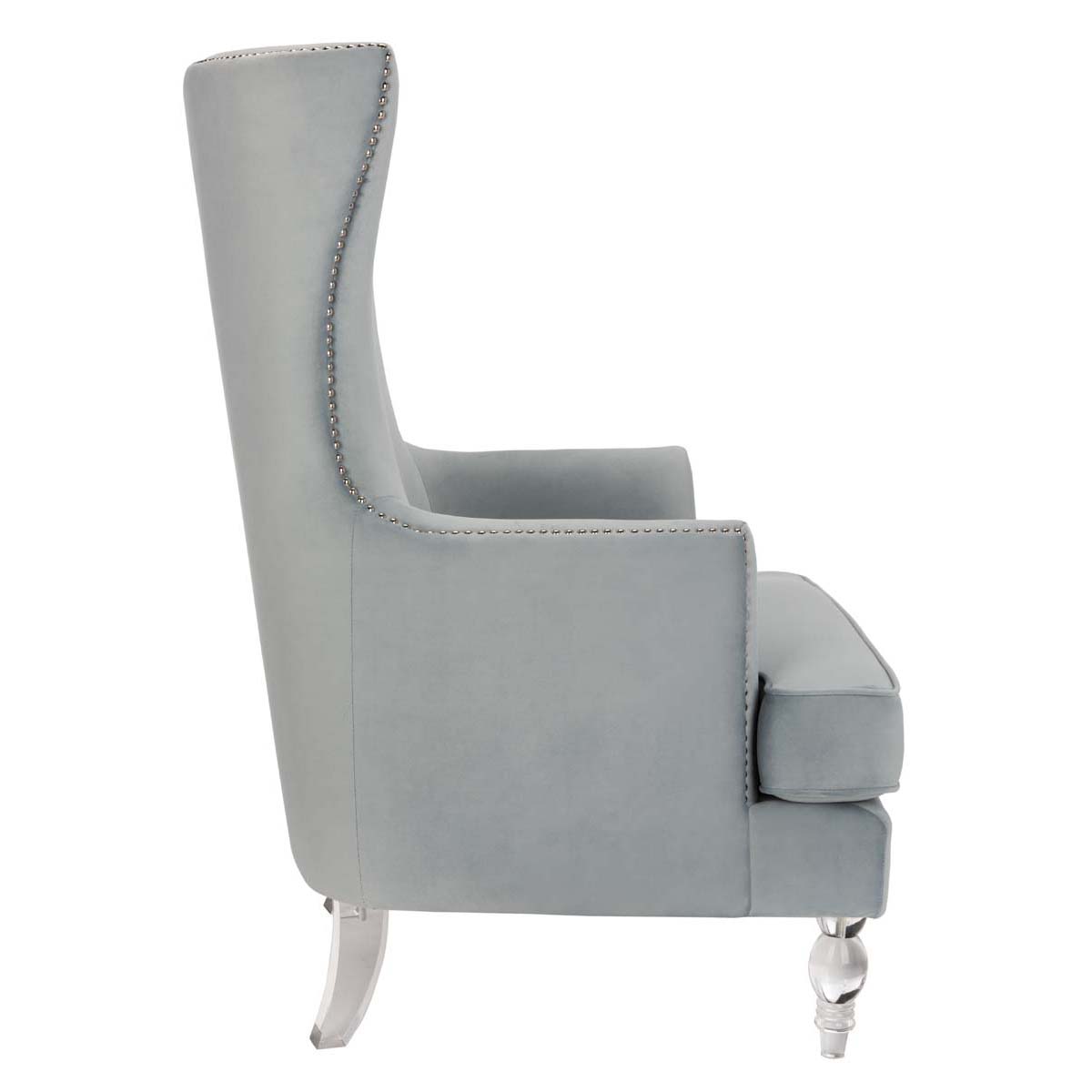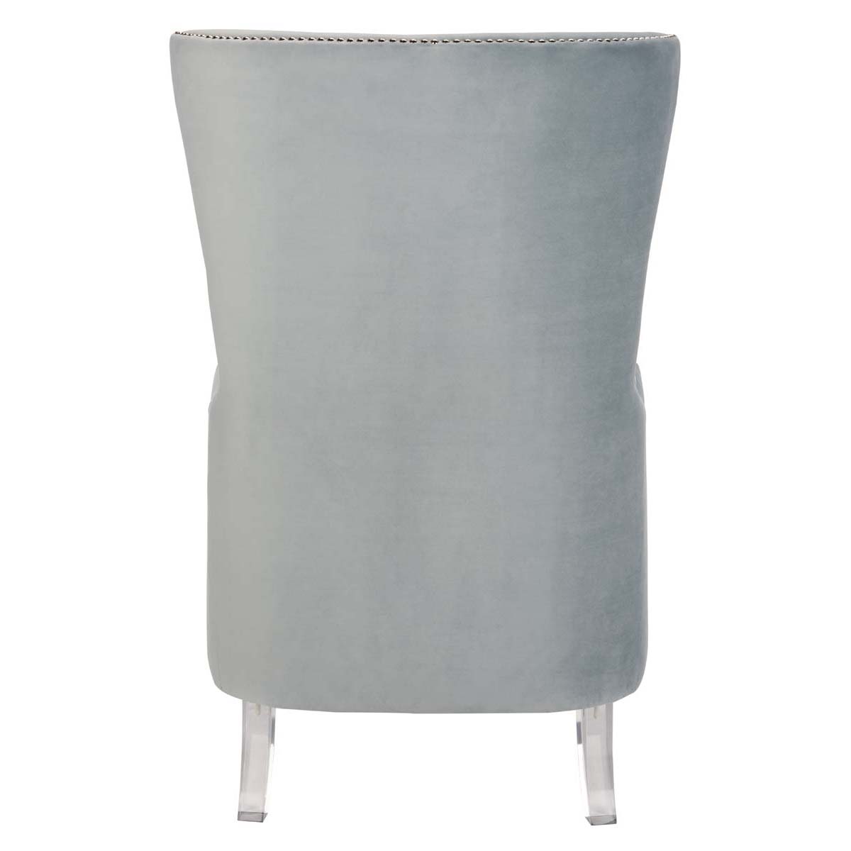 Unquestionably grand with just a hint of attitude, the Geode Chair casts a palatial pose in room decor. Blending a classic wingback silhouette with mod acrylic legs, Geode brings refashioned elegance to any living room, study, or master suite. Geode is covered in plush light silver velvet lending a comfort soft finish to this stylish arm chair.