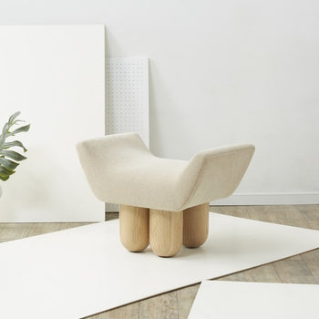 Bring elevated drama and comfort to your space with our Giancarlo ottoman. Our ottoman strikes a stylish impact with its playful and sculptural profile. It balances crisp lines and curves to attain a beautifully contoured seat. The seat is elevated upon meticulously sculpted ashwood legs to offer artisanal warmth and drama. Upholstered in the rich textures of boucle, our ottoman lends a stylish and cozy touch to any corner. It works great as a comfy footstool, an extra seat, or a handy side table to hold trays or books.