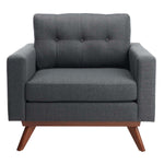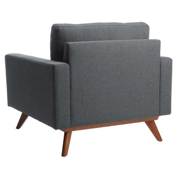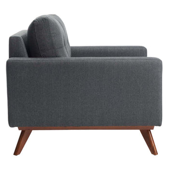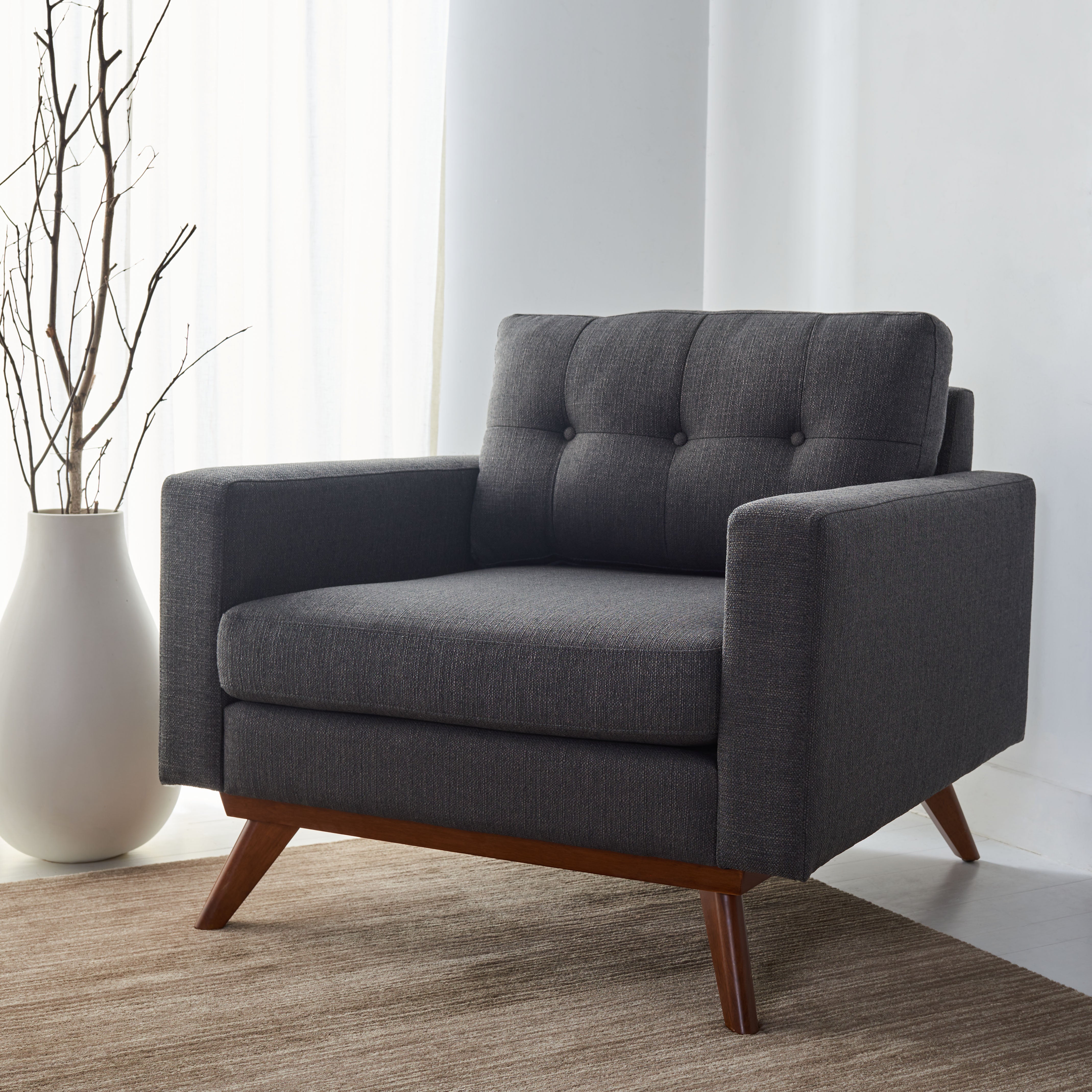 Stately with a hint of glam, the Gneiss Modern Arm Chair raises the bar for contemporary classic styling. Sophisticated character is conveyed in the executive design of Gneiss, with a splayed wood legged frame offering an enticing departure from the expected. Upholstered in tufted grey linen, Gneiss is comfort and class personified.