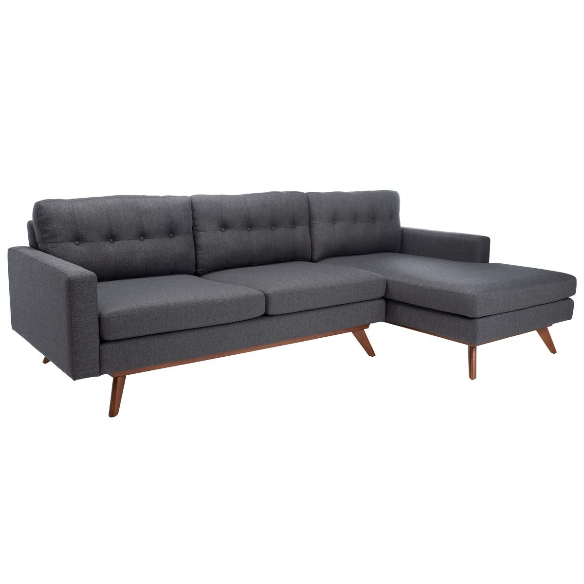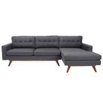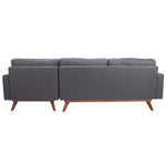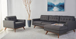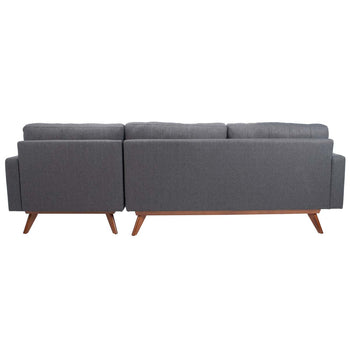 The enduring allure of retro élan is beautifully displayed in the handsome design and comfort-soft seating of this Gneiss Modern Linen Sectional Sofa. Upholstered in tufted slate grey linen with sculpted splayed wooden legs, Gneiss is an essential for today’s sensible home decor.