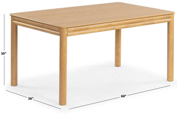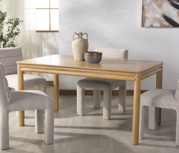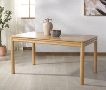 Feast your eyes on the Harriette 60" Rectangle Dining Table, a striking piece that blends seamlessly with any decor. With its natural tones, made from genuine rubberwood, oak veneer, and manufactured wood, this dining table exudes a sense of calming ambiance, reminiscent of a charming rustic retreat. Unlike other dining tables, the Harriette 60" Rectangle Dining Table showcases tasteful elegance without sacrificing its sturdy construction. Offering a spacious surface, this dining table can accommodate several diners for that intimate dinner or festive gathering. Experience the beauty and stability that comes from the exquisite craftsmanship of our dining table. The blend of rubberwood, oak veneer, and manufactured wood ensures a sturdy structure that is not only stylish but also reliable for your daily dining needs. The natural colors of our Harriette dining table inspire a warm, welcoming atmosphere in your dining room. This piece is designed not only to bring people together for meals but to serve as an impressive centerpiece in your dining area. Bring home the Harriette 60" Rectangle Dining Table, where sophistication meets functionality in a harmonious combination. Enjoy the comfort and class that this dining table provides for you and your loved ones.