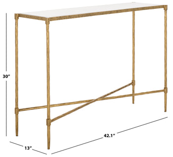 Presenting our Isabellina Metal and Marble Console Table! If you're looking to add a touch of understated elegance to your living space, this sophisticated piece will indeed be the perfect choice. Its iron construction ensures solid stability and makes it a timeless possession. The iron introduces a glimmering golden hue that complements the crisp white of the marble top, making this piece suitable for various interior styles. Suitable for lobbies, hallways, or living rooms, it makes an instant statement with its classic design. This fine piece of furniture fashion not only provides functionality but also acts as an exquisite focal point to your room. The pristine white marble top adds a luxurious touch and offers a strong surface for lamps, picture frames, and other decorative objects. Make your home extraordinary with the Isabellina Metal and Marble Console Table. Modern design, timeless appeal.