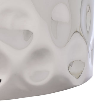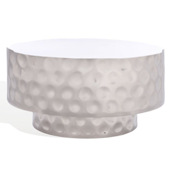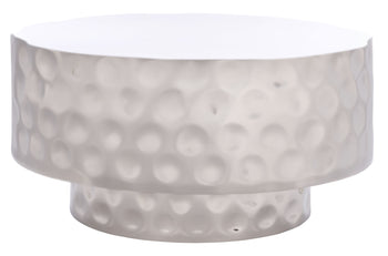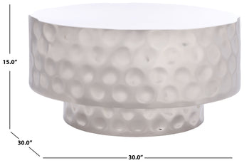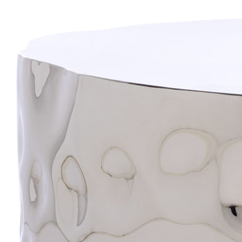 Introducing the Janalee Hammered Steel Coffee Table, a contemporary masterpiece that infuses an understated elegance into any living space. Crafted from robust stainless steel and iron, this coffee table displays a gorgeous chrome finish that effortlessly merges with all kinds of interior decor. The stunning hammered texture of this coffee/cocktail table instantly elevates the aesthetic appeal of your space. Designed to display a blend of strength and beauty, it also provides ample surface space for your beverages, books, or decor pieces. With a versatile blend of functionality and fashion, the Janalee Chrome Coffee Table invites you to revel in the world of stylish home furnishings. It translates outstanding craftsmanship into a contemporary furniture piece that is hard to miss. Get ready to step into a world of modern elegance with Janalee.