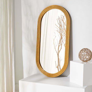 Reimagining Art Deco decadence for today's glamorous interiors, this Jeanelle Mirror is a showstopper. Jeanelle's concentric grooved oval frame and shimmering gold finish conjure images of lavish Gatsby galas, making it an eye-catching focal point in any room.