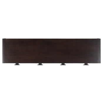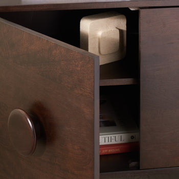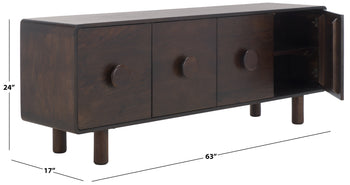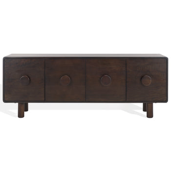 Make a chic and sophisticated statement with our Jennamira sideboard. Our sideboard makes an impact with its modern profile and art-deco-inspired details. Its linear silhouette is softened with curved edges to attain a soft and inviting appeal. Finished off with eye-catching, round pulls, the storage unit offers a chic and stylish edge to any corner. It is crafted from mango wood in a deep brown finish to add stunning dimension to your home. Featuring four roomy cabinets, the sideboard can effortlessly function as a media unit, buffet, or office cabinet.
