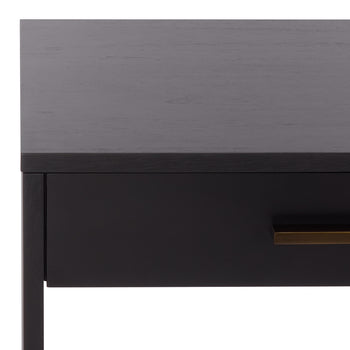 Introducing the Jessey 2 Drawer Wood Desk, a synthesis of style and functionality that transforms any workspace. With its sleek finish and striking brass accents, this desk brings a touch of elegance to your home or office. Designed with two spacious drawers, it provides ample storage for your essentials, helping you maintain an organized and clutter-free environment.