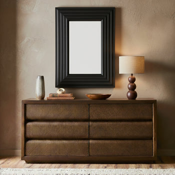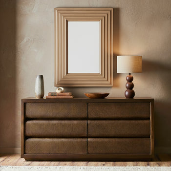 Transform your space with the understated elegance of the Jilianna Rectangle Wood Mirror. This versatile piece reflects a simple beauty that integrates seamlessly into any decor. The color enhances the warm tone of any room, while the durable wood frame adds a touch of rustic charm. Perfectly complementing the wooden frame, the metal accents bring a hint of modern sophistication, creating a balanced look that appeals to both contemporary and traditional tastes. Whether hung in an entryway, bedroom, or living area, the Jilianna mirror becomes a striking focal point that adds depth and openness to your environment. Its clean lines and functional design make it more than just a decorative piece. The clarity of the mirror is ideal for those daily preparations, providing a crystal-clear reflection every time you need it. Embrace the subtle beauty and practicality of the Jilianna Rectangle Wood Mirror as it enhances your space with timeless appeal. Elevate your space with the Jilianna Rectangle Wood Mirror, where natural materials meet artistic expression. Discover how this piece can transform your environment into a personal sanctuary filled with warmth and character.