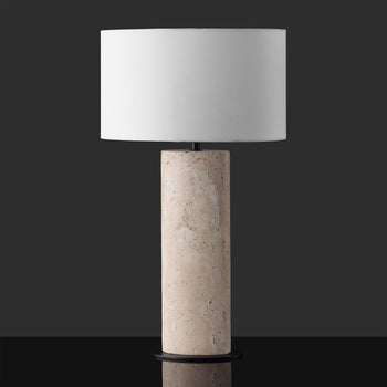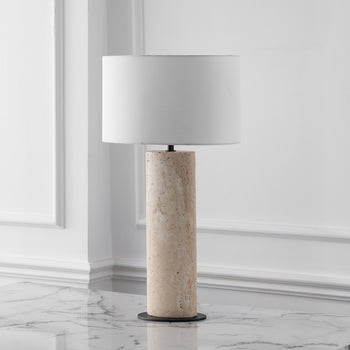 Illuminate your space with the chic allure of the Jillianna Round Travertine Table Lamp. This stunning lamp combines the natural beauty of travertine with the sleek touch of iron, creating a captivating visual balance. The lamp is designed in a sophisticated white shade, exuding elegance and modernity. Its round travertine base offers a sturdy foundation, while the shade provides a soft glow that enhances any room's ambiance. Whether placed on a bedside table or a living room console, the Jillianna Table Lamp is a versatile piece that elevates your decor. Its blend of textures and subtle colors allows it to seamlessly integrate into various design styles. Bring a touch of contemporary charm to your home with this beautifully crafted lamp and enjoy the warm, inviting atmosphere it creates.