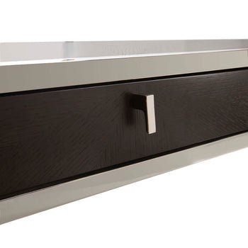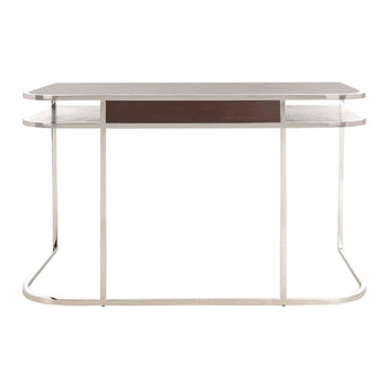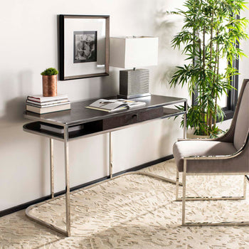 Bring refined minimalist style to the home office with this sleek contemporary desk. A design investment, it's crafted with oak veneer that features a rich espresso finish to create depth and warmth. Powerful bold steel angles make it a modern marvel.