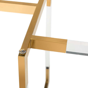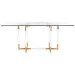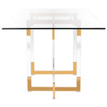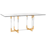 Inspired by furnishings by a top Italian designer, this contemporary Glass Dining Table boasts glamour and grace. Adding cosmopolitan charm to any dining room, it's crafted with acrylic and brass finished stainless steel and paired with a sleek glass top.