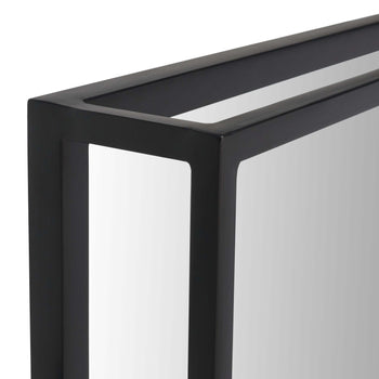 Sleek and modern, this Kallie Mirror is the epitome of contemporary chic style. Kallie's jet black shadow box frame emanates a decorative sense of depth, and its petite shelf is perfect for seasonal decor.