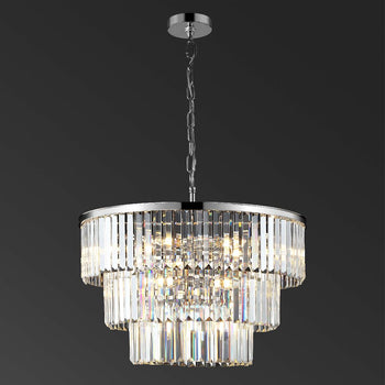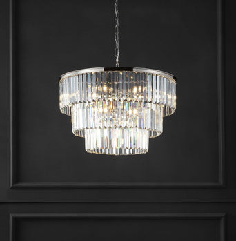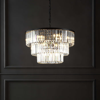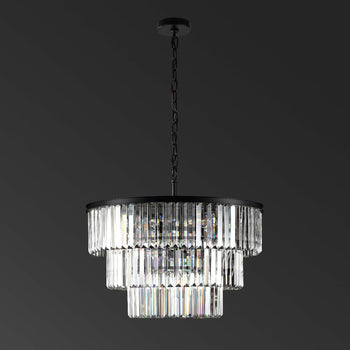 This captivating Karissa Chandelier brings undeniable star quality to your decor, making it a must-have for celebrity-chic interiors. Flaunting two cascading tiers of elongated crystal prisms beneath a sleek black crown, Karissa's unapologetic Old Hollywood glamour instantly transforms any room.
