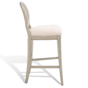 Translating neoclassical French elegance into contemporary-chic decor, this Karlee Barstool is a modern restyling of classic Louis XVI chairs. Karlee's rustic grey finish adds hints of provincial charm to its fashion-forward rattan backrest, while a soft beige linen cushion ensures lasting comfort. Sold in sets of two.